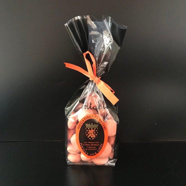 Fleuron de Nevers, née en 1850 d’une recette imaginée par JL Bourumeau, confiseur nivernais. Une recette tenue secrète et perpétuée au fil des siècles. La légende raconte que l’Impératrice eugénie, épouse de l’Empereur Napoléon III, appréciant tellement cette confiserie, fit connaître la Nougatine dans tout Paris dès juillet 1862. La nougatine (sucre et amandes hachée) enrobée de glace royale (sucre et blanc d’œuf).
