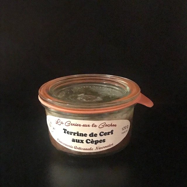 Terrine de Cerf aux Cèpes – La Cerise sur le Cochon 58700 Prémery – Verrine 120 gr