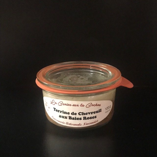 Terrine de Chevreuil aux Baies Roses – La Cerise sur le Cochon 58700 Prémery – Verrine 120 gr